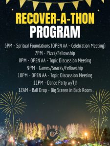 Recover-A-Thon6:00 pmNew Years Eve Meetings, Food, and Dance! Club 12 of Plattsburgh